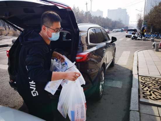 学工办各位老师前往大学城公寓,慰问部分本科生,并发放生活物资。