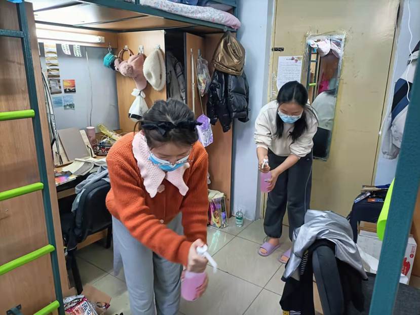 于2022年3月18-19日组织学生对宿舍进行通风、消毒工作,保持寝室整洁卫生,共抗新冠疫情。在疫情防控常态化和疫情形势严峻背景下,组织同学们对宿舍进行全方位消毒、保证日常通风习惯、环境整洁卫生对于加强同学们卫生防控、科学防控意识是十分必要、有效的。在寝室封闭期间,寝室是同学们生活和学习的场所,整洁卫生的生活环境、学习环境,有助于学生保持积极健康的心态、培养良好的生活习惯,保证同学们在疫情下也能完成学习任务,顺利度过疫情难关。海角视频
