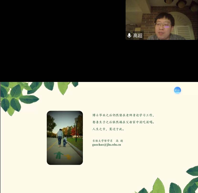 学术要有兴趣使然。高超老师讲到研究一个问题,首先要有对这一方面的浓厚兴趣,若是抱着痛苦不情愿的态度,则不可能取得成功。高老师介绍到自己正是有着对哲学的浓厚兴趣,有幸在高中听取孙正聿教授讲座,故立下志向,成为孙正聿教授的一名学生,并通过不断努力,才逐步能取得今日的成果。