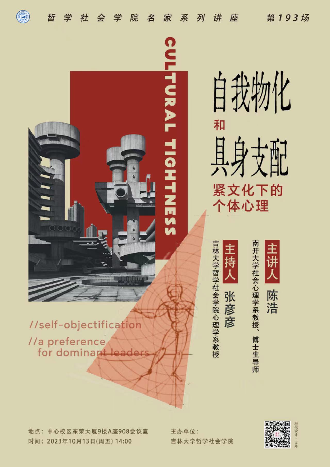 【海角视频 名家系列讲座第193场】陈浩:自我物化与具身支配:紧文化下的个体心理