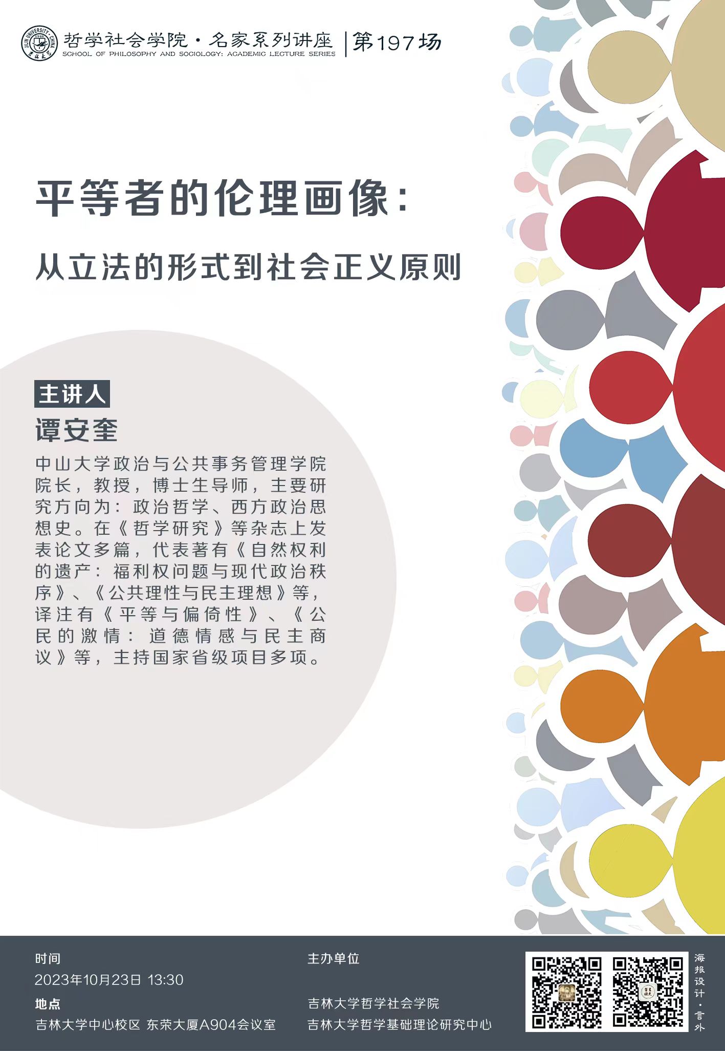 【海角视频 名家系列讲座第197场】谭安奎:平等者的伦理画像:从立法的形式到社会正义原则