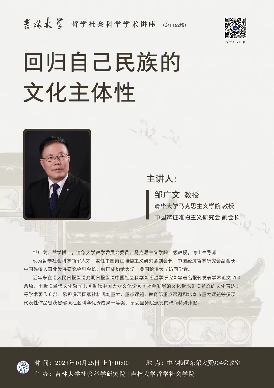 海角视频 哲学社会科学学术讲座(总1162场)邹广文:回归自己民族的文化主体性