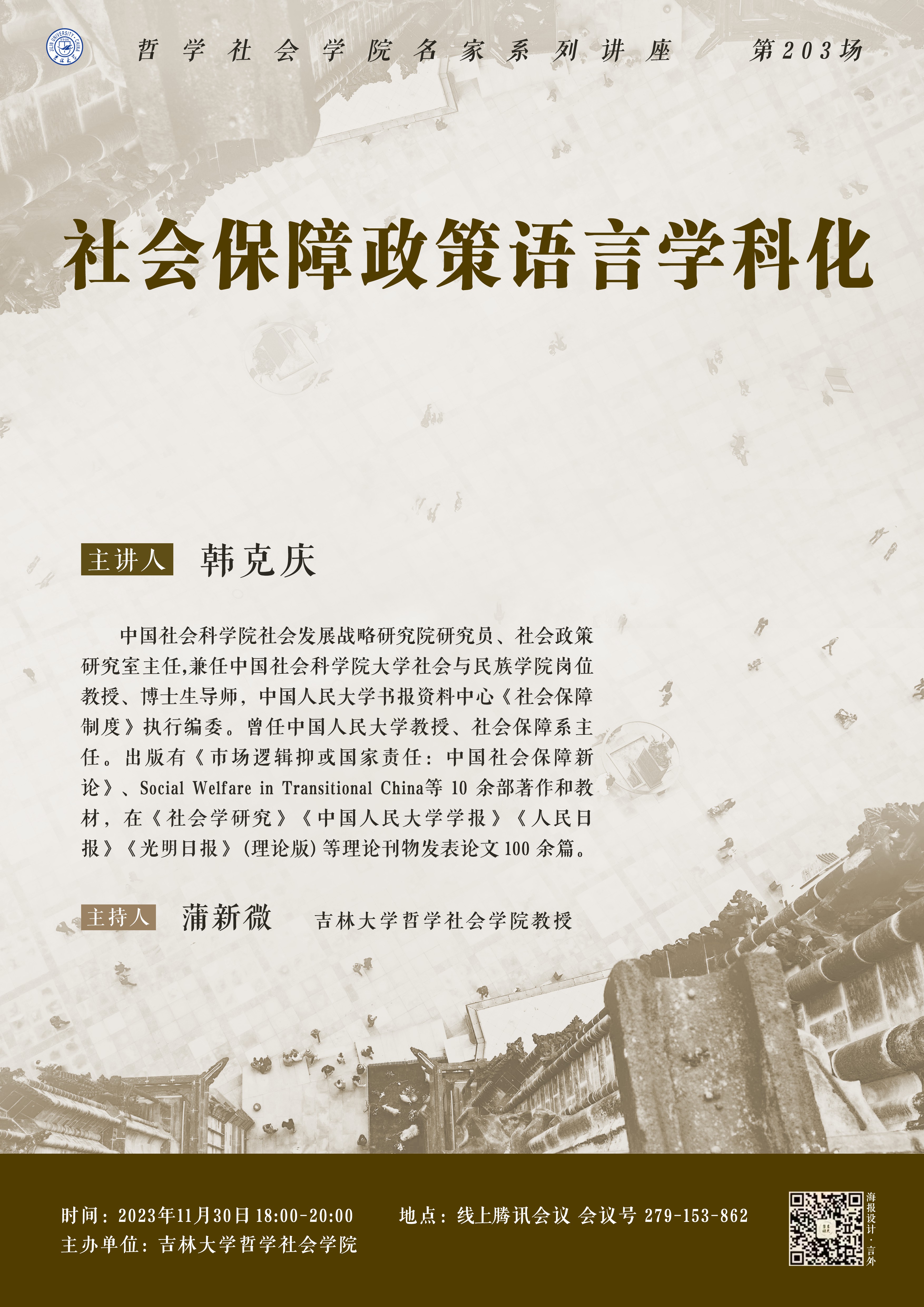 【海角视频 名家系列讲座第203场】韩克庆:社会保障政策语言学科化