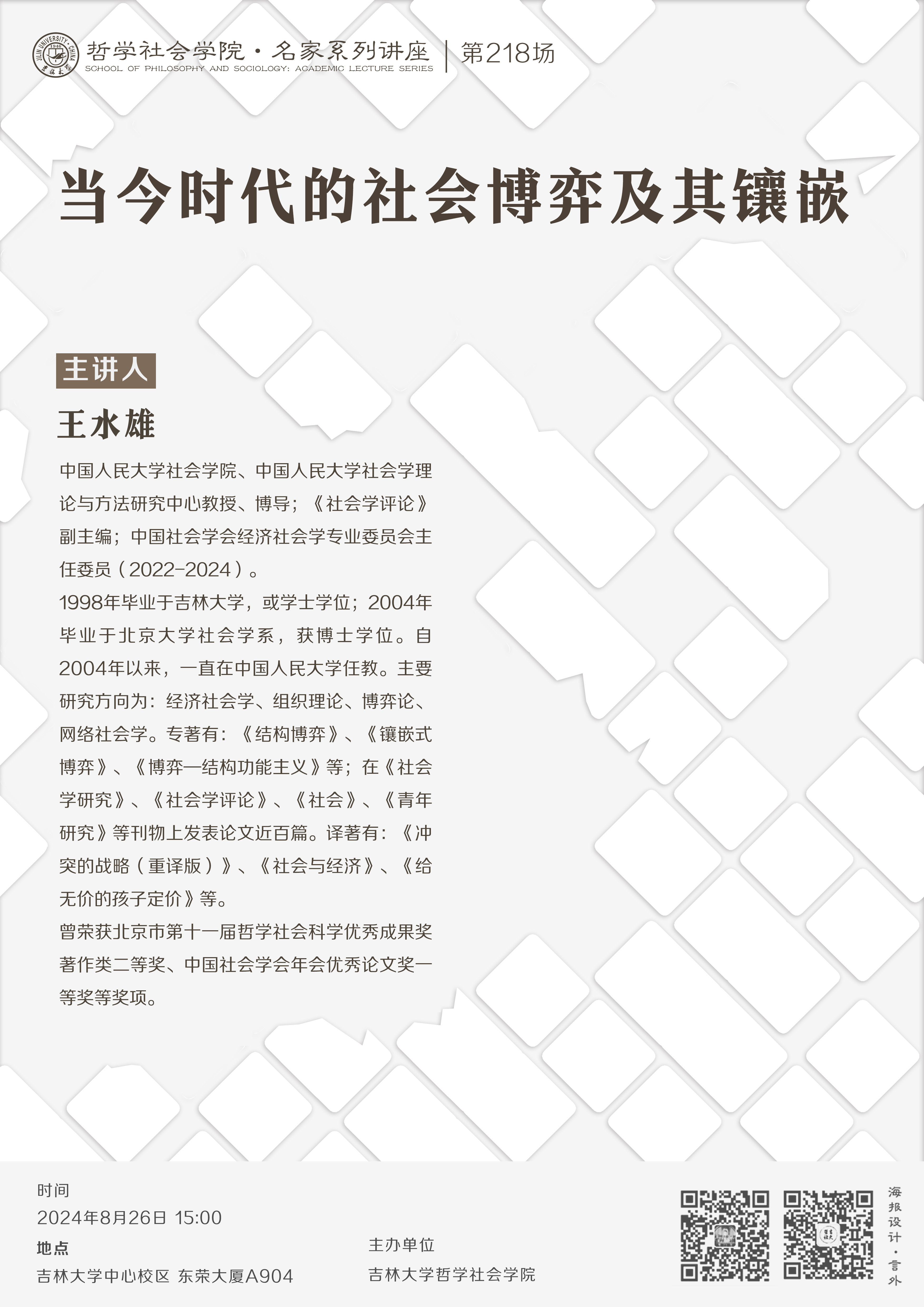 【海角视频 名家系列讲座第218场】王水雄:当今时代的社会博弈及其镶嵌