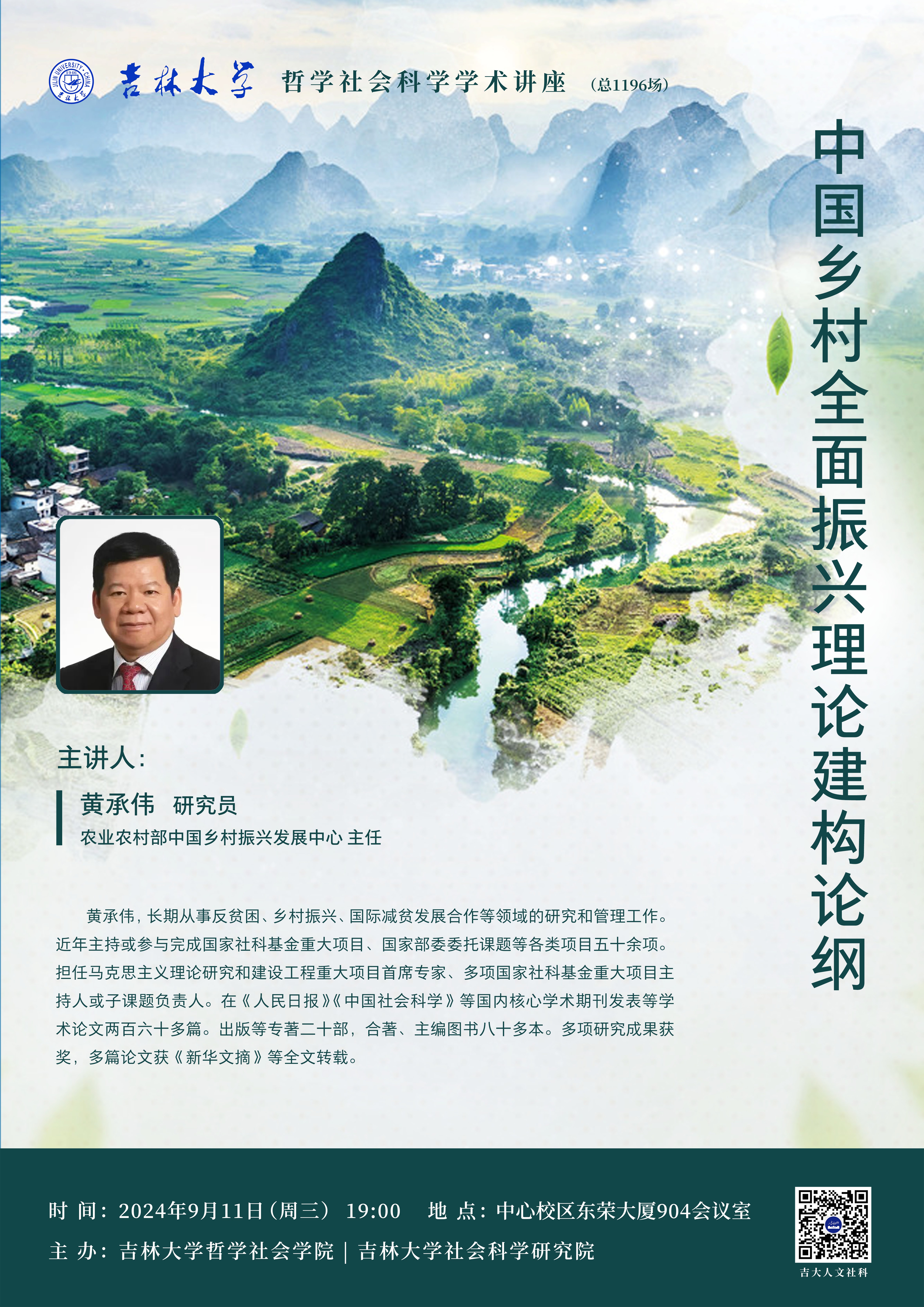 【海角视频 哲学社会科学学术讲座(总1196场)】黄承伟:中国乡村全面振兴理论建构论纲