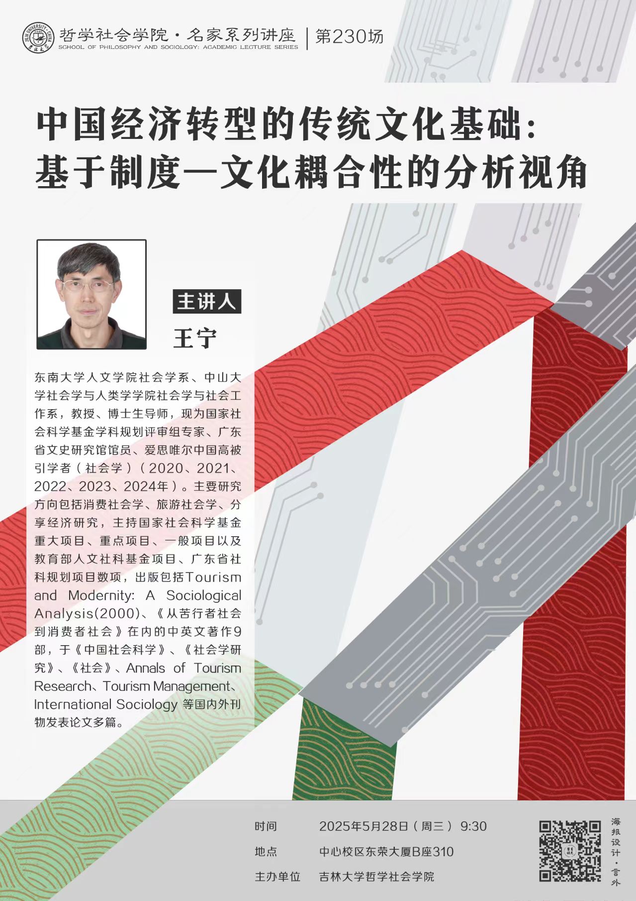 【海角视频 名家系列讲座第230场】王宁:中国经济转型的传统文化基础:基于制度—文化耦合性的分析视角