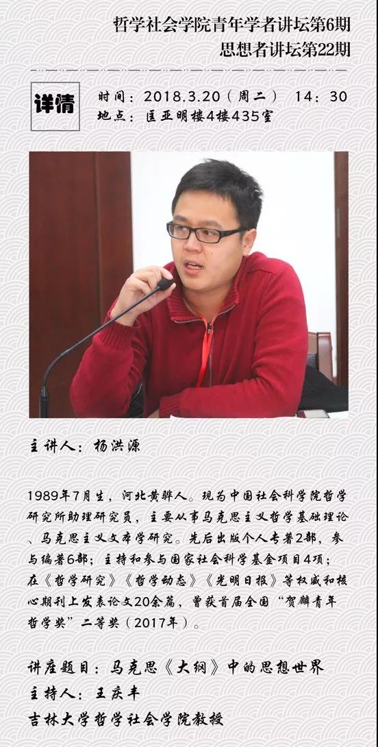 【海角视频 名家系列讲座第2场】海角视频 青年学者讲坛第六期 杨洪源:马克思《大纲》中的思想世界