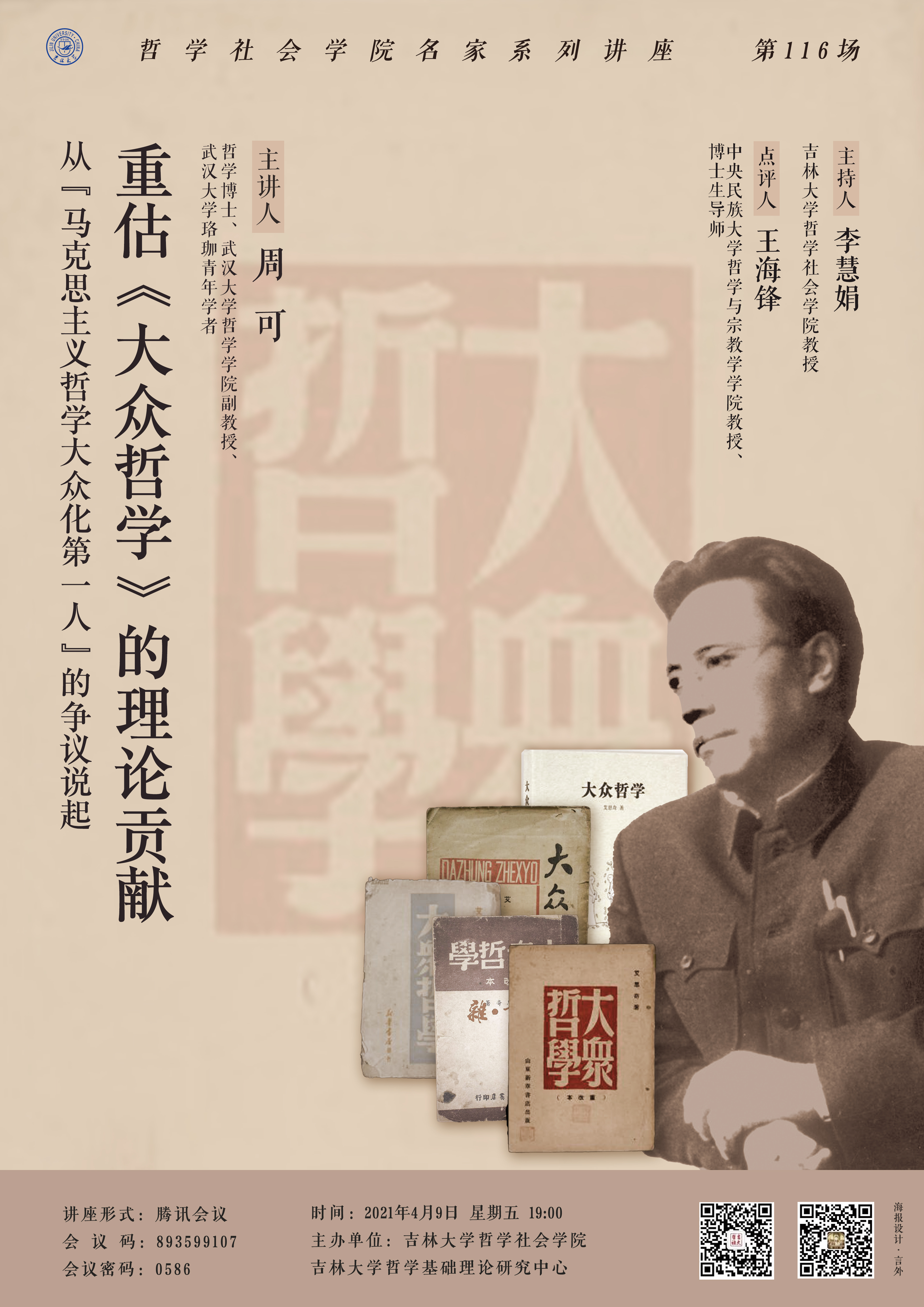 【海角视频 名家系列讲座第116场】周可:重估《大众哲学》的理论贡献——从“马克思主义哲学大众化第一人”的争议说起