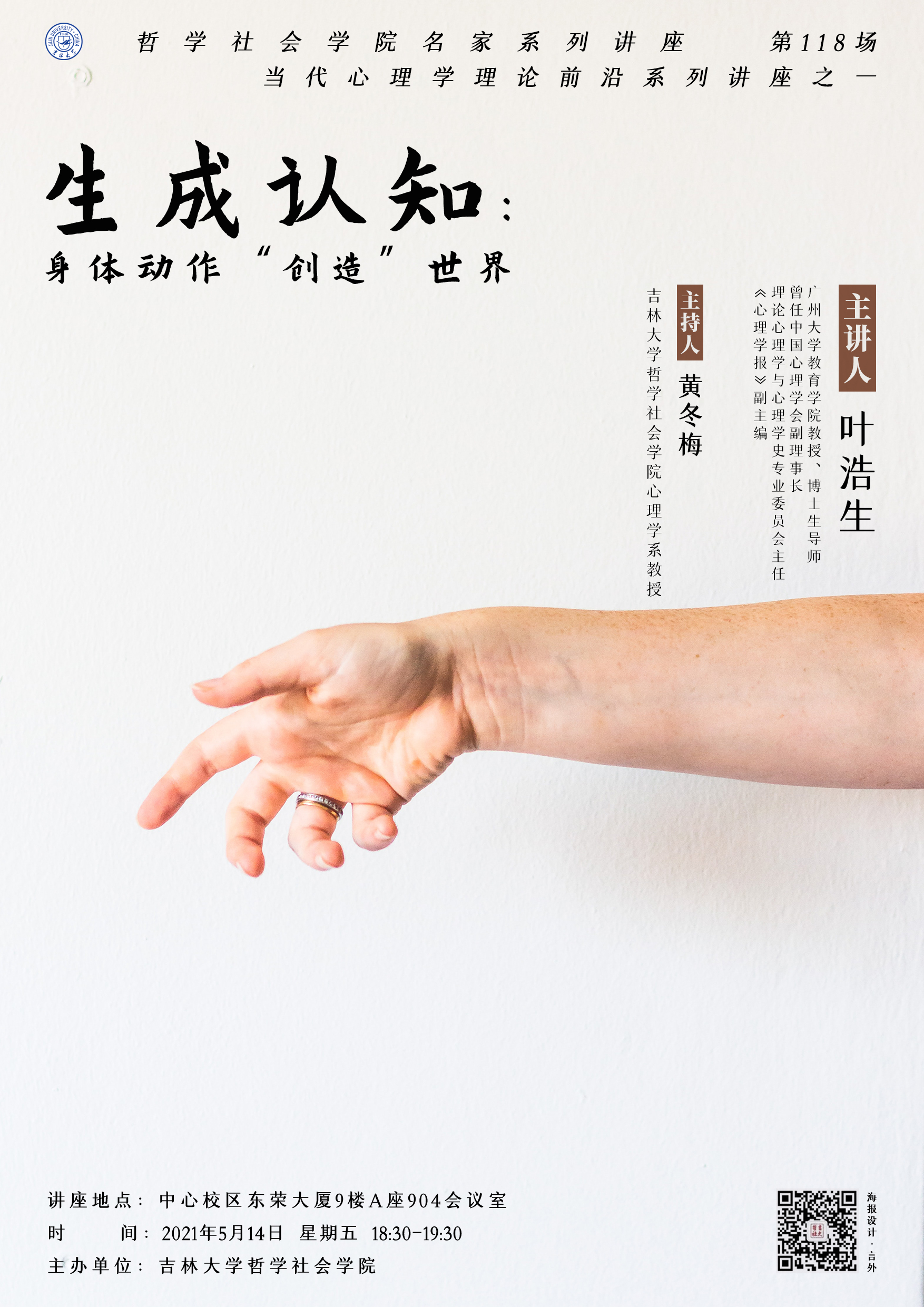 【海角视频 名家系列讲座第118场】【当代心理学理论前沿系列讲座之一】叶浩生:生成认知:身体动作“创造”世界