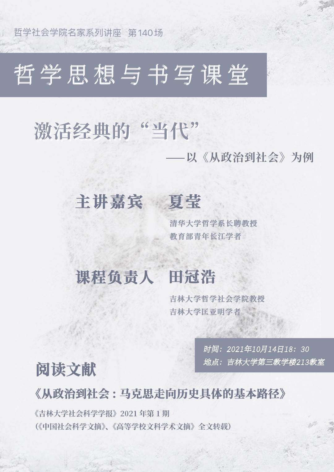【海角视频 名家系列讲座第140场】【哲学思想与书写讲堂】夏莹:激活经典的“当代”——以《从政治到社会》为例