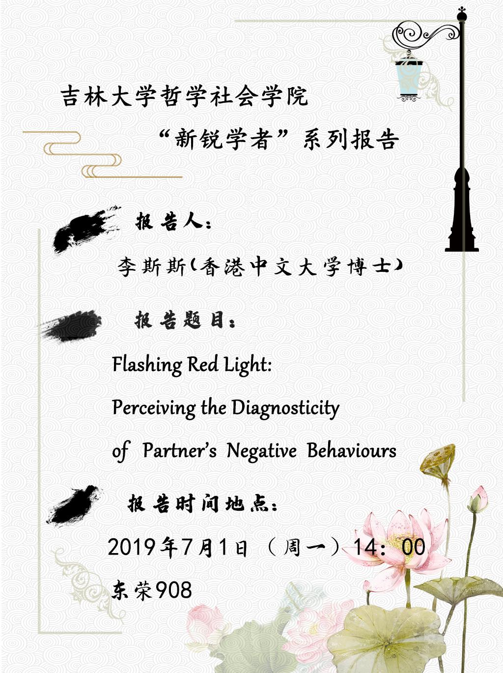 【海角视频 “新锐学者”系列】李斯斯:Flashing Red Light:Perceiving the Diagnosticity of Partner's Negative Behaviours