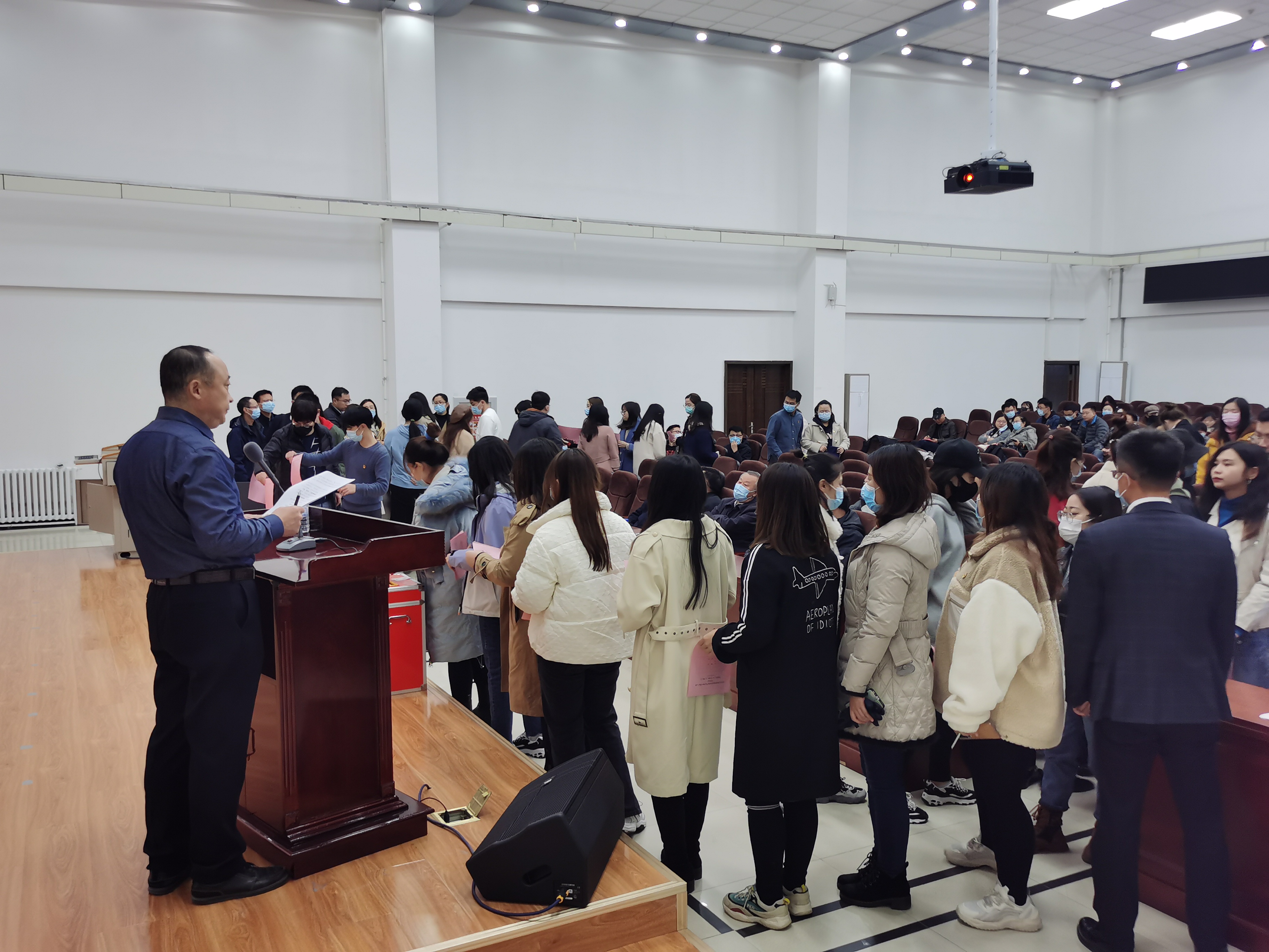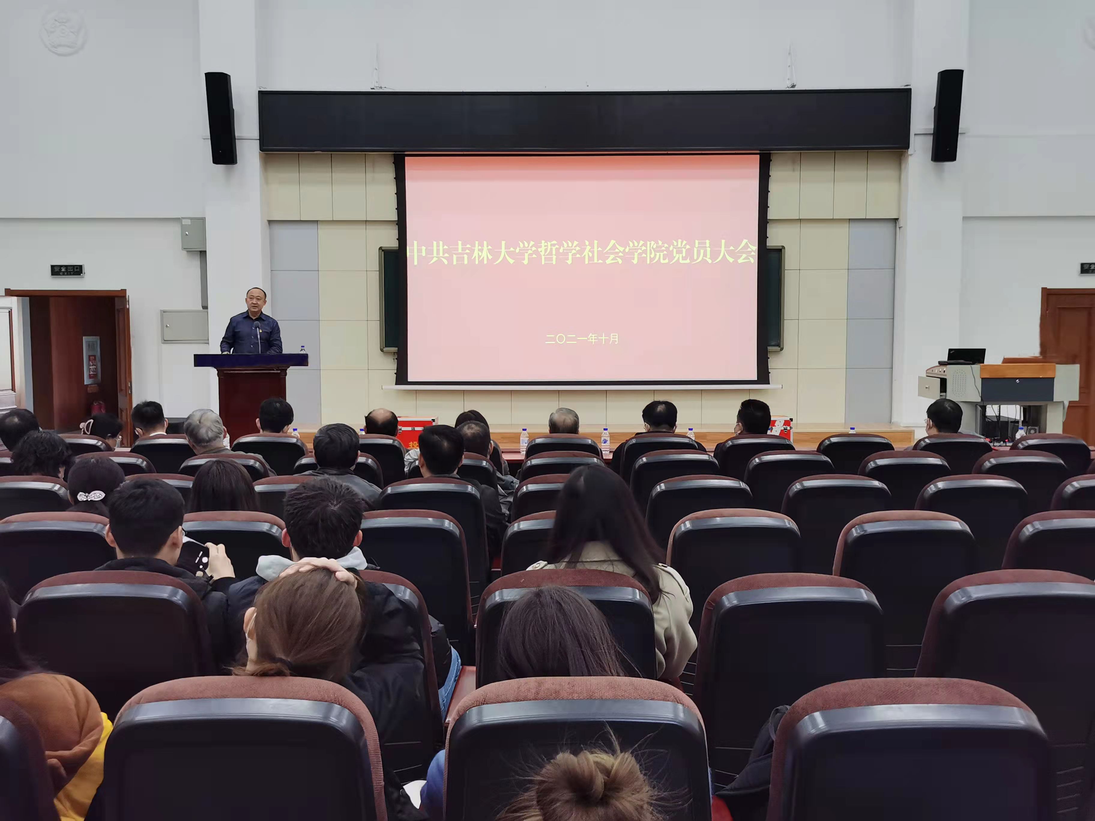 在数学楼报告厅召开全体党员大会。海角视频
