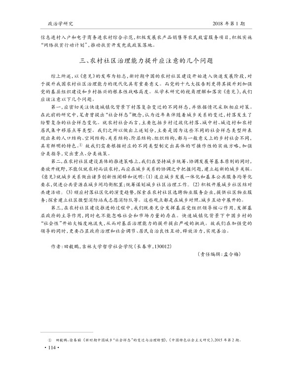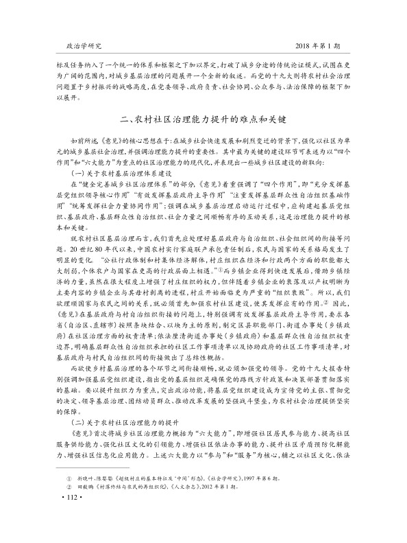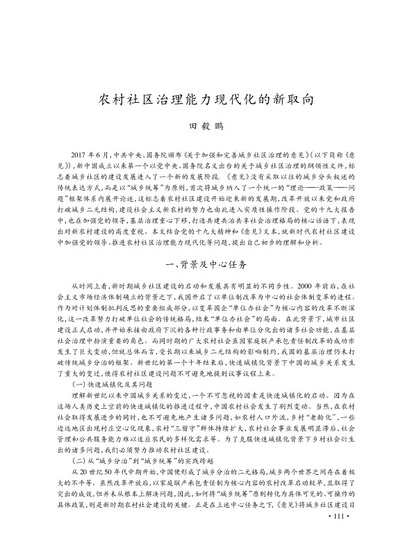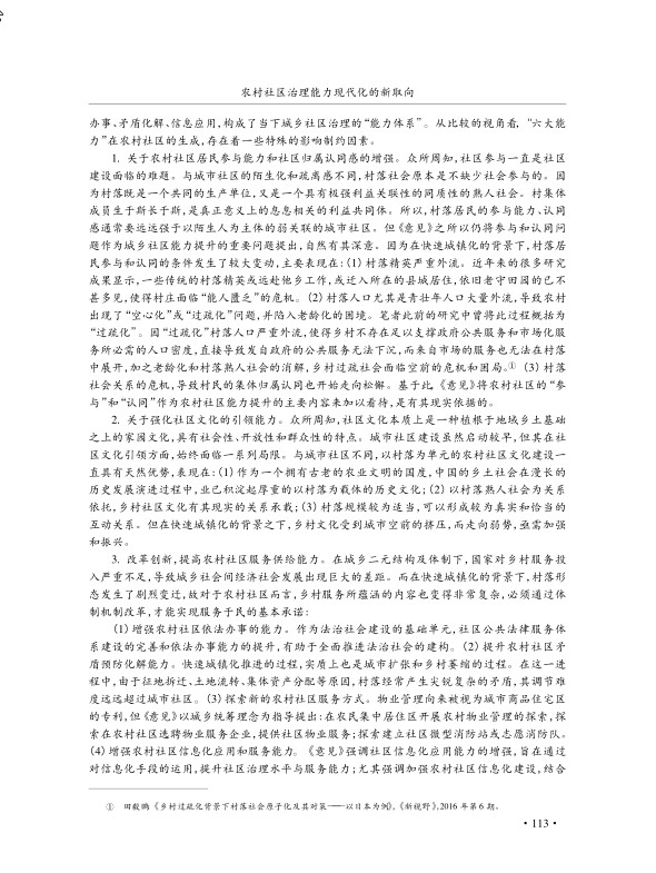 期发表《农村社区治理能力现代化的新取向》一文。原文如下: