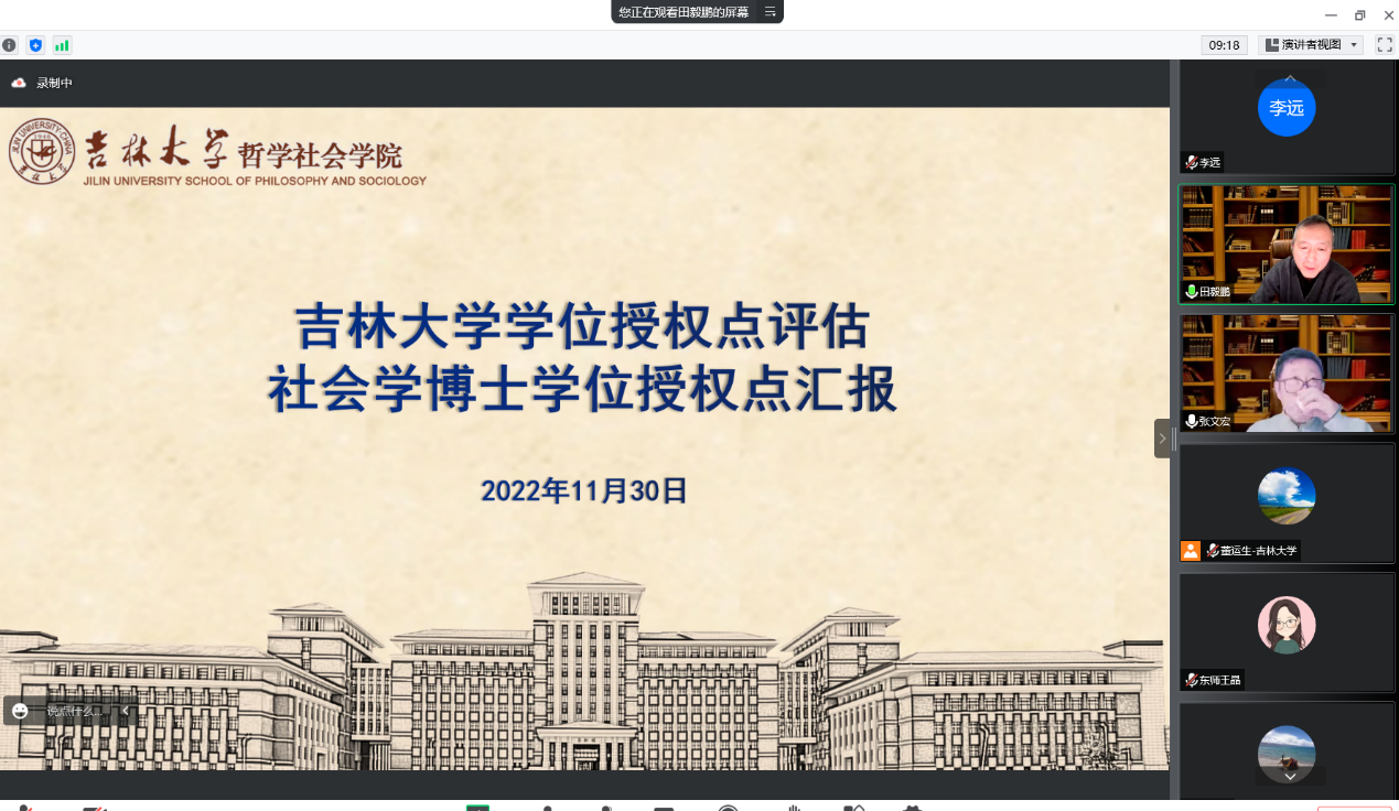 社会学学位授权点评估会在线上召开。本次评估的外单位同行评估专家有南开大学张文宏教授(评估组组长)、中国人民大学刘少杰教授、中国社会科学院张翼教授、清华大学王天夫教授、东北师范大学王晶教授。海角视频