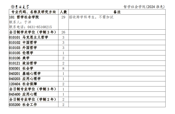 2024年接收优秀应届本科毕业生免试攻读研究生招生简章及专业目录》为准。