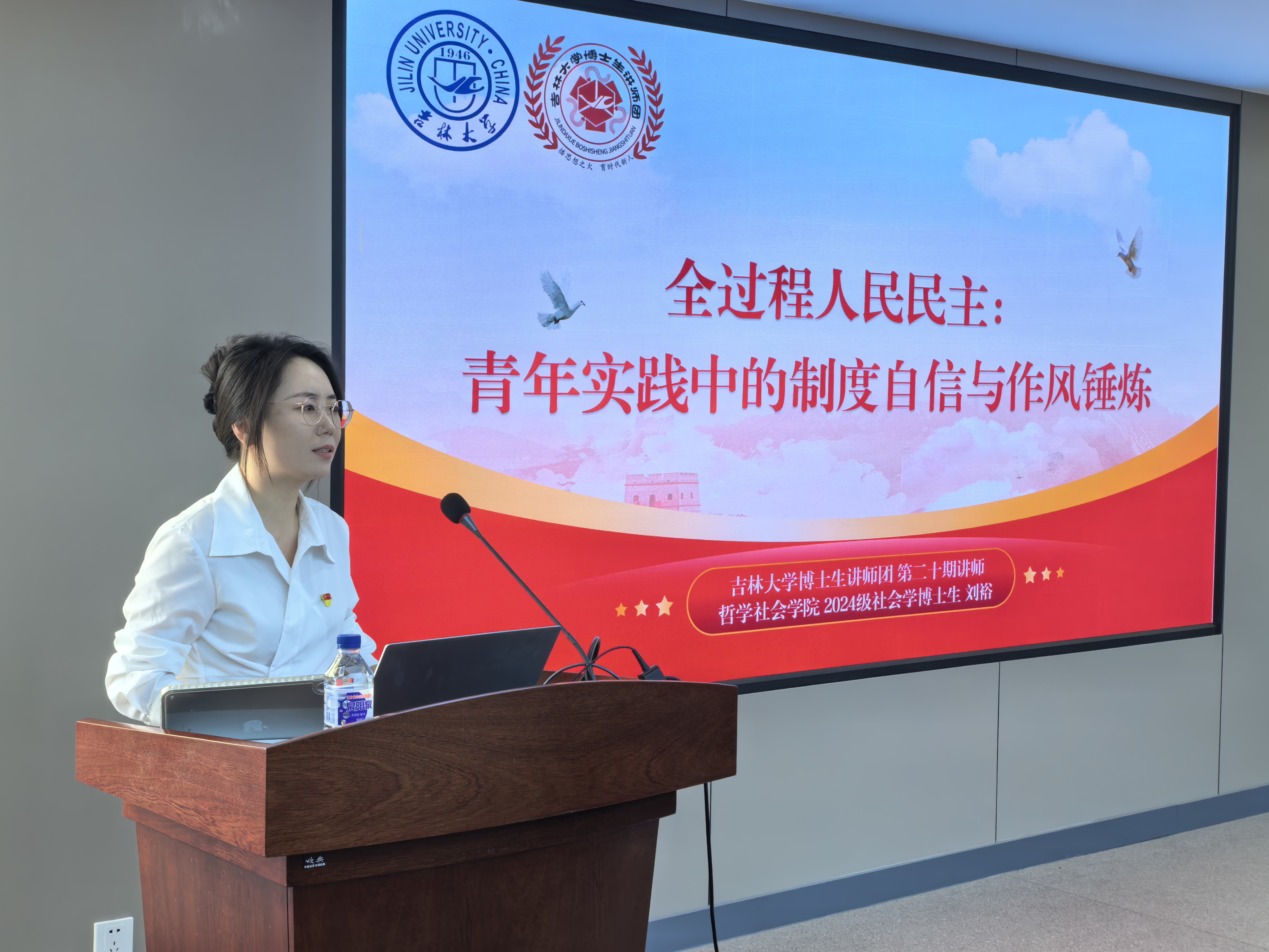 博士生讲师团成员、2024级社会学博士研究生刘裕同学,在东荣大厦904会议室举办了题为“全过程人民民主:青年实践中的制度自信与作风锤炼”的主题宣讲。本次宣讲由海角视频