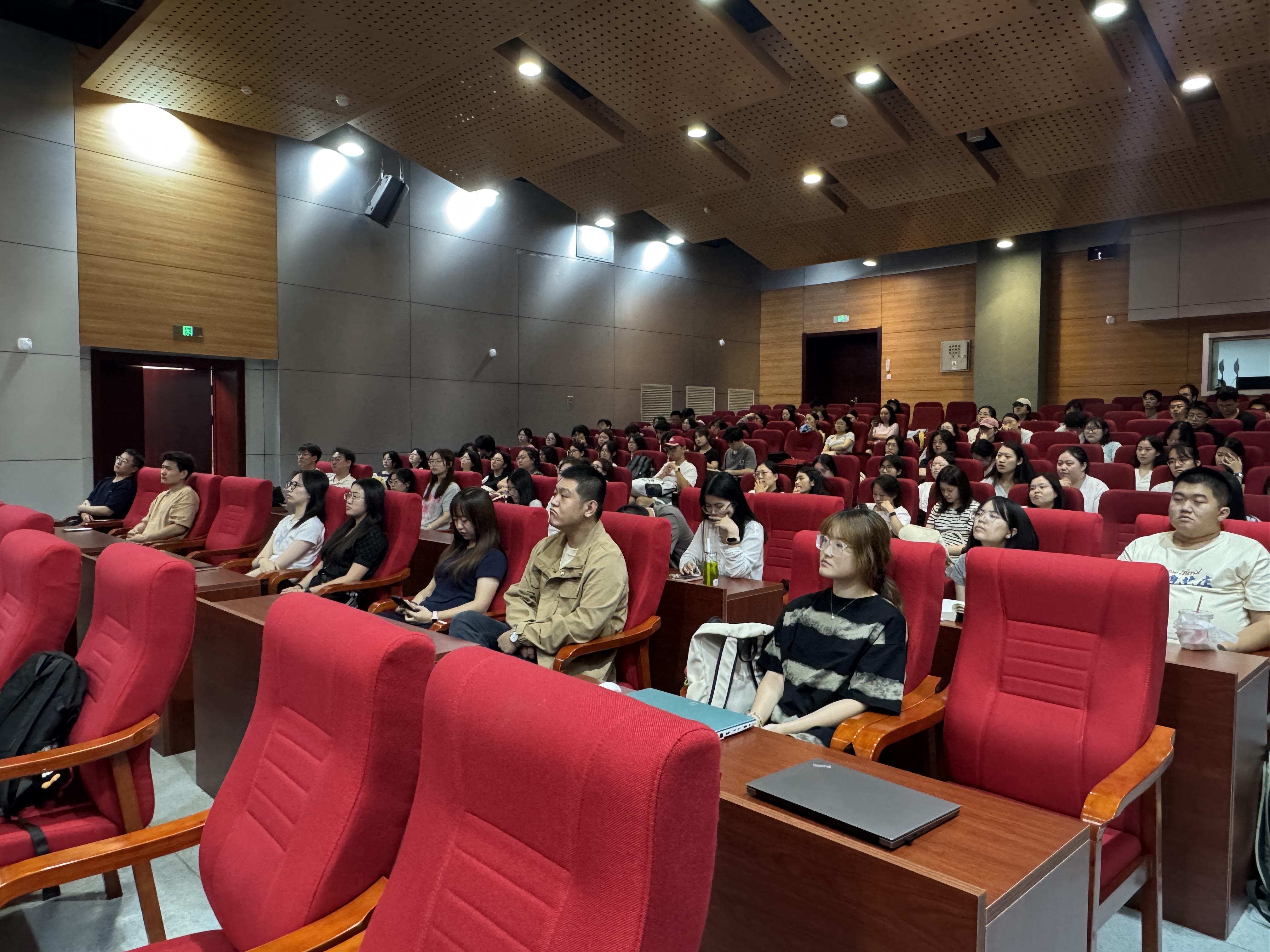 2025年度“十佳研究生”获得者、2025届硕士毕业生张馨康作经验交流分享,研究生辅导员于洋老师主持,2025级全体硕士研究生参加活动。