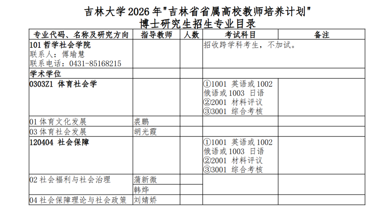 2026年“吉林省省属高校教师培养计划”博士研究生招生专业目录》的报考条件。