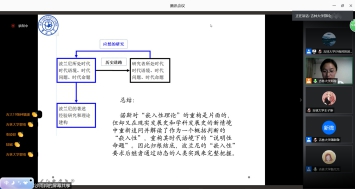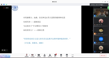 劳动与社会保障系衡元元博士对于沙雨邦同学此次的报告内容进行了评议,从对波兰尼《大转型》的理解、诺斯的重构及其片面性、三个维度下波兰尼和诺斯的嵌入性理论及报告人的自我反思三个方面对沙雨邦同学的报告做出了精彩的总结与评述。报告结束后,同学们踊跃提问,沙雨邦同学与线上同学就报告的相关内容进行了深入的交流和互动。