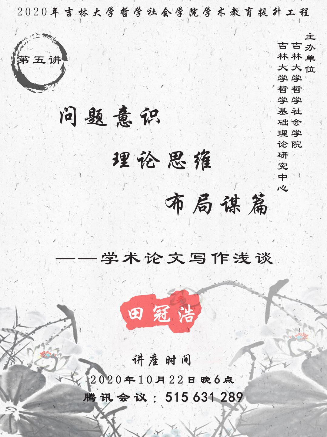 2020年海角视频 学术教育提升工程第五讲:问题意识 理论思维 布局谋篇——学术论文写作浅谈 田冠浩