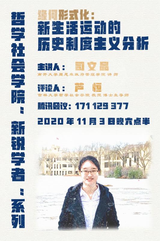新锐学者系列报告:司文晶---缘何形式化:新生活运动的历史制度主义分析