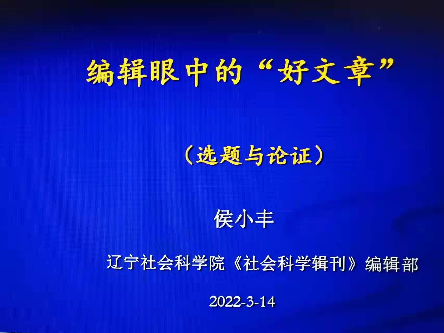 2022年3月14日晚,辽宁社会科学院研究员、《社会科学辑刊》哲学编辑侯小丰研究员应邀做海角视频