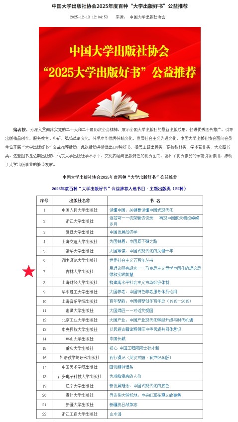 (消息来源 | 中国大学出版社协会官网、吉林大学出版社官方微信公众平台综合整理)