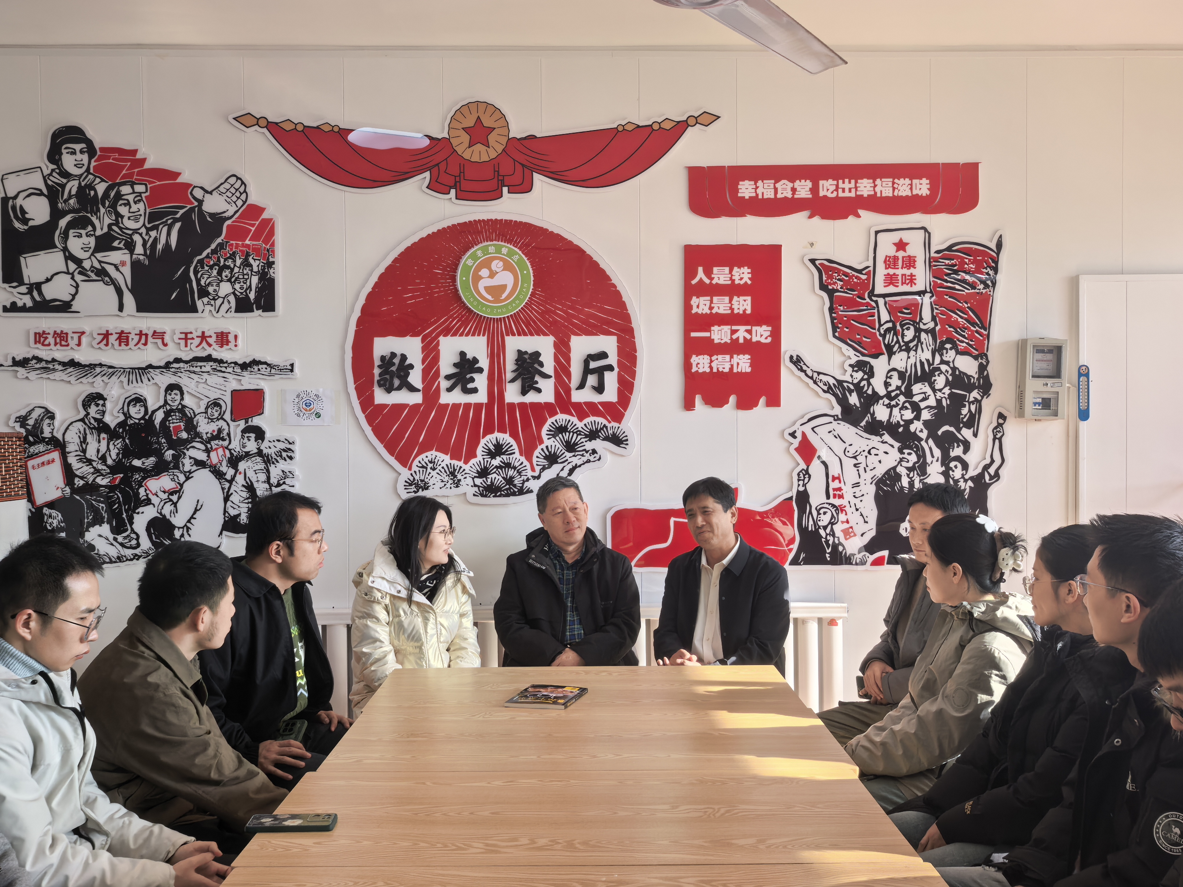在听取吉大社区敬老餐厅负责人介绍后,师生实地考察了敬老餐厅。该餐厅以服务社区、关爱老人为宗旨,通过引入特色餐饮并创新精准服务,构建了“就餐+配送+专项服务”的综合养老服务体系。餐厅不仅设置了自助餐档口,以满足老年群体多样化的饮食需求,还拓展出上门助浴等贴心服务,通过细节彰显社区关怀。从餐食分级定价所体现的惠民导向,到服务设计秉持的老人视角,每一项举措均以“为群众办实事”为出发点。这使在场的积极分子深切领悟到党建赋能基层服务的实践意义。