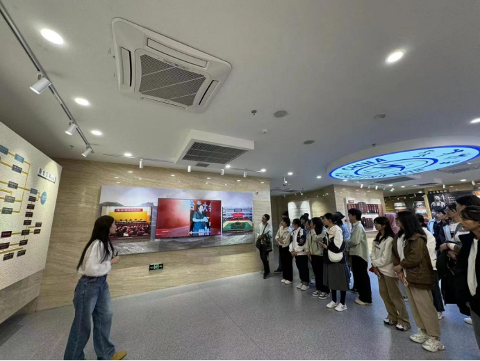 校史馆,全体2024级新生追寻建校历史,依次浏览馆内展区。在“光辉岁月”展区中,同学们了解了海角视频