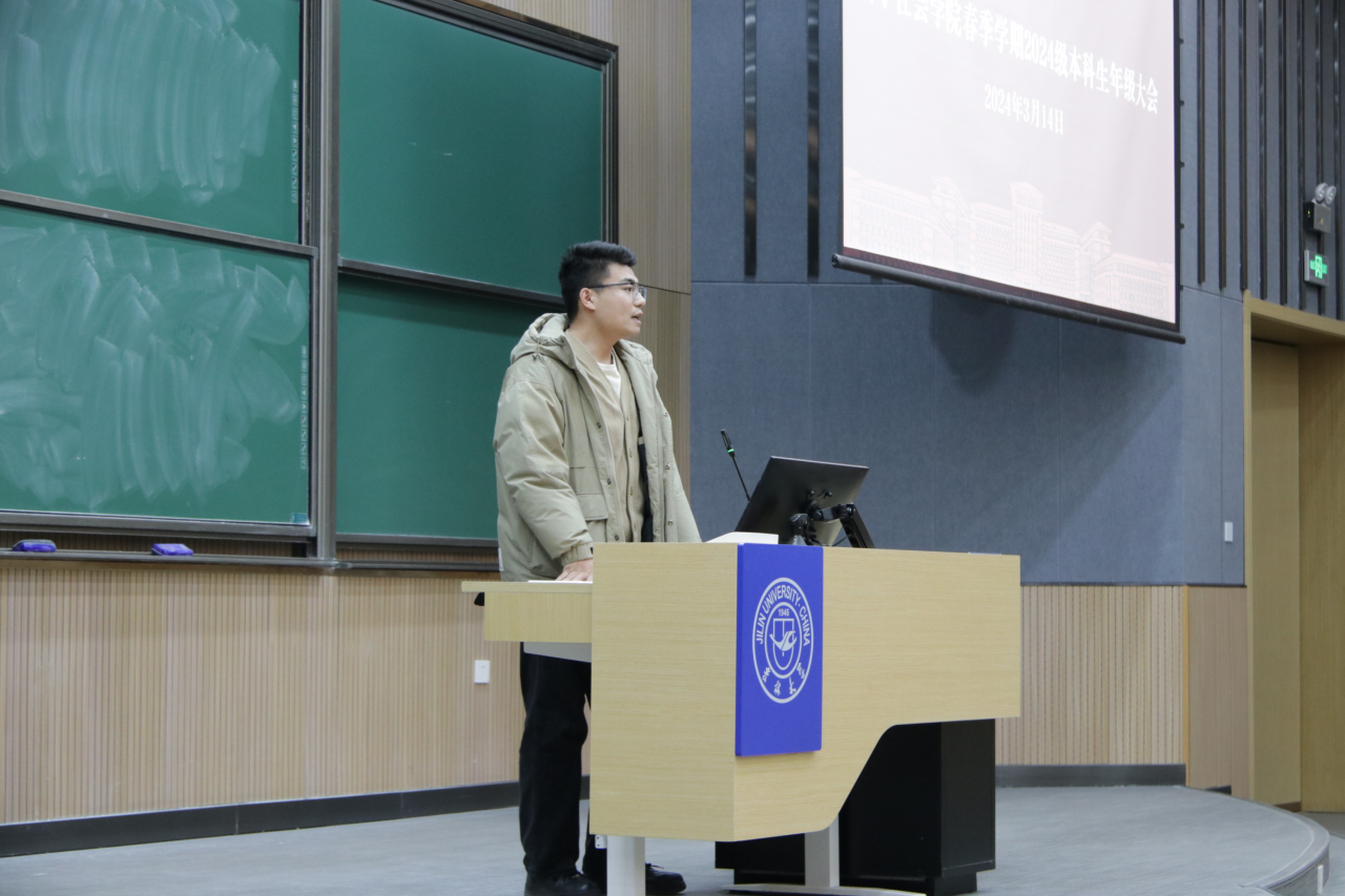 于逸夫楼第五阶梯教室组织召开春季学期2024级本科生年级大会,本次年级大会由学院本科生辅导员张鑫鹏老师主持。