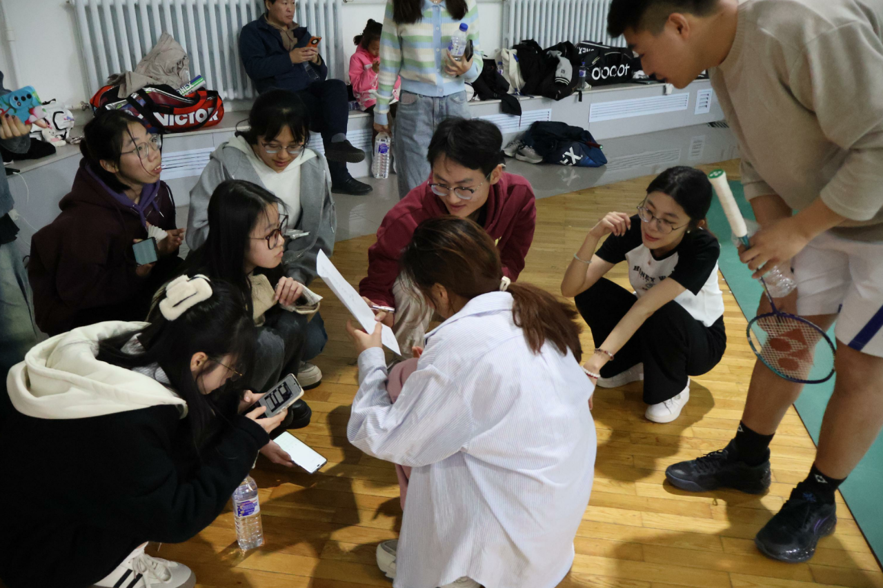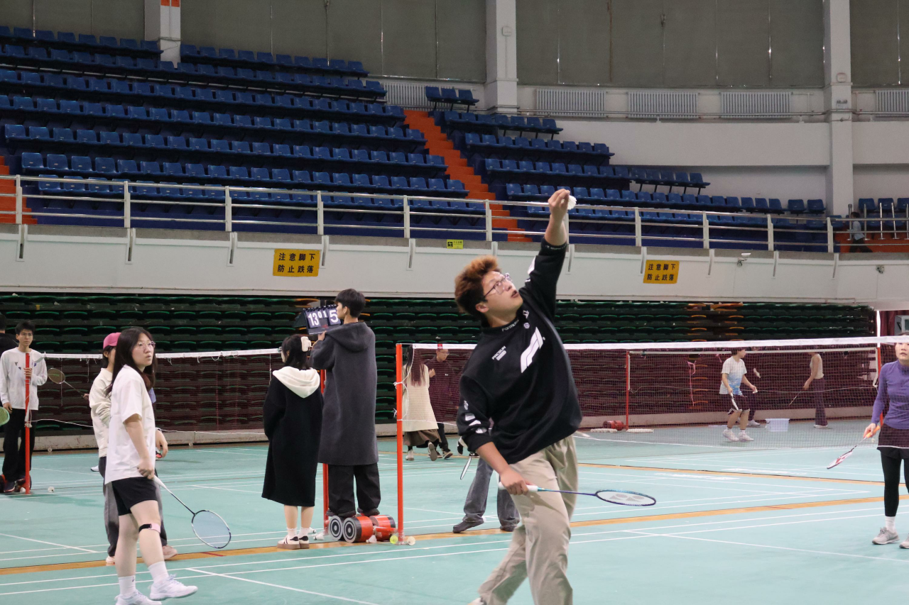 场馆内弥漫着紧张而专注的气息。师生们或独自热身,或三两切磋。有人仔细调整装备,有人凝神练习挥拍,每一个动作都在为即将到来的对决积蓄力量。空气中涌动着无声的斗志,仿佛连飞旋的羽毛球都在期待这场智慧与激情的碰撞。