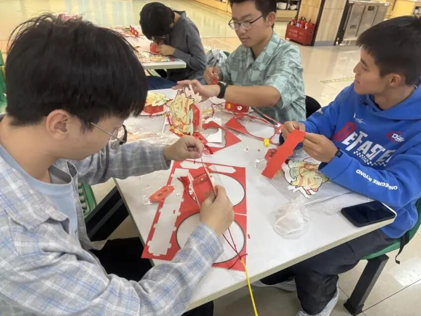 以“灯”为媒,共赏传统雅趣。活动中,工作人员为同学们分发精心准备的灯笼DIY材料包,竹架、彩纸、画笔等物件一应俱全,为大家搭建发挥创意的平台。同学们或手绘玉兔、明月、桂树等传统中秋元素,或书写“但愿人长久,千里共婵娟”等经典诗句,在专注创作中赋予灯笼独特的文化内涵与个人心意,一个个兼具传统韵味与青春创意的灯笼在桌面逐渐成型。灯笼制作期间,猜灯谜环节同步开展,各类谜题围绕中秋习俗、传统文化知识展开,同学们在破解谜题的过程中重温中秋文化知识,感受传统民俗的智慧与乐趣。