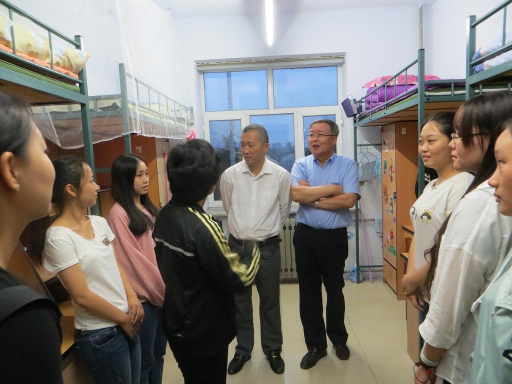领导本着“以生为本”的思想,于8月27号晚上6点走进了大一新生宿舍,探访慰问新生。此次参与看望新生的领导有海角视频