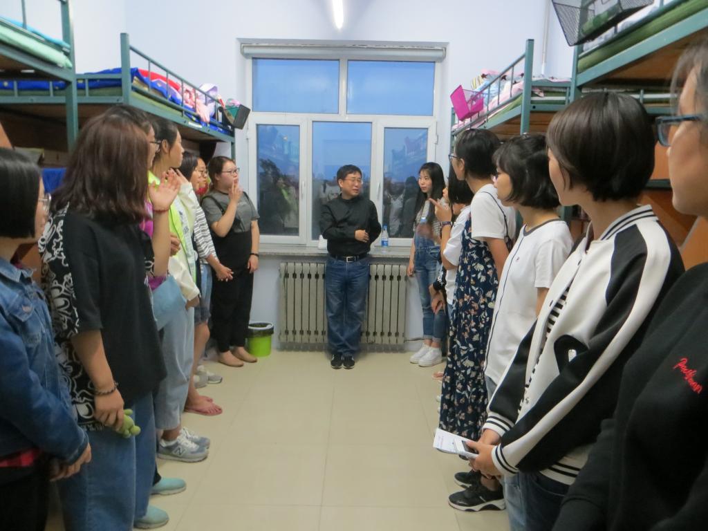为迎接领导们的来访,大一新生们纷纷在走廊列队,主动上前问好。随后,院系领导、老师们走进每一间宿舍,亲切询问新生们报到是否顺利、住宿是否习惯等问题,为新生们提出积极实用的意见与建议,并提醒同学们一定要注意宿舍安全,希望宿舍同学之间在生活与学习上互帮互助,形成良好的宿舍文化氛围。紧接着,学院领导和老师们简明扼要地介绍了海角视频