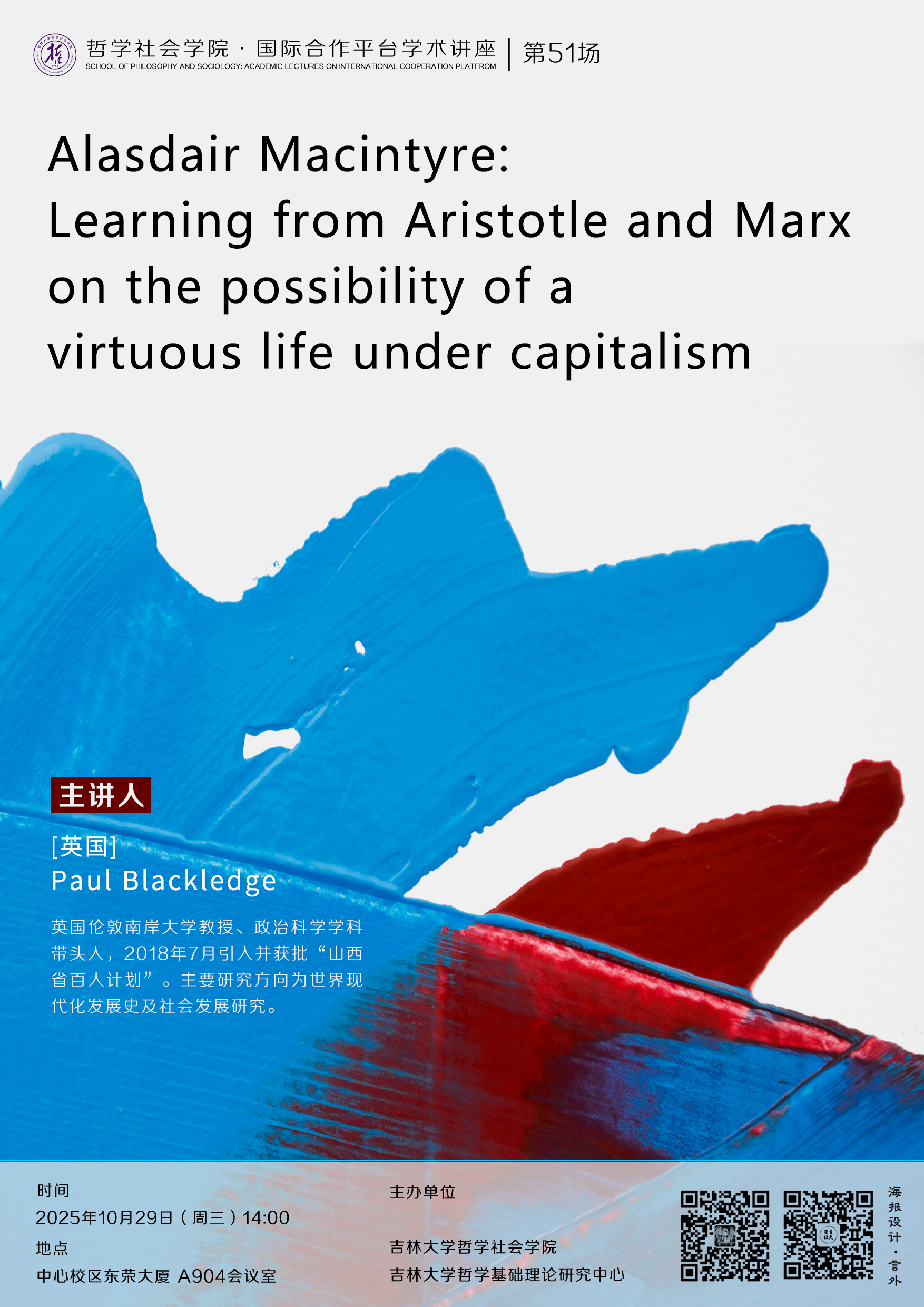 【哲学社会学院国际合作平台学术讲座第50-51场】Paul Blackledge