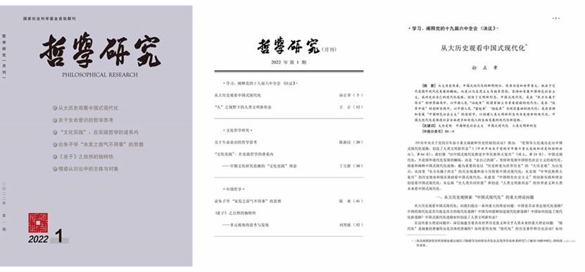 【消息来源:社会科学处】近日,2022年第1期《哲学研究》以头题刊发海角视频