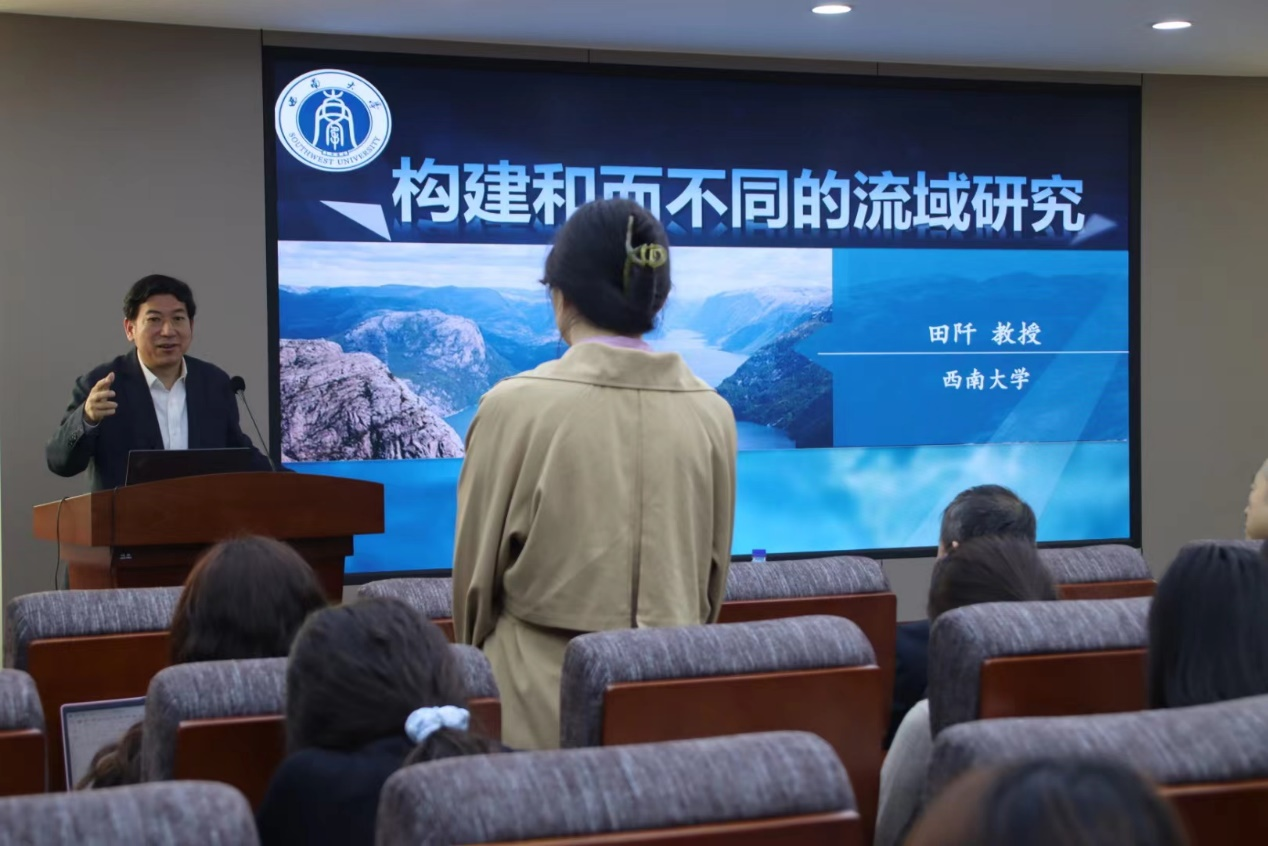 田阡教授认真回应了学生提出的“现代化话语体系下,水的意义是什么?”“流域研究过程中,如何将各个村落的研究进行串联”等问题,使我院师生受益良多。