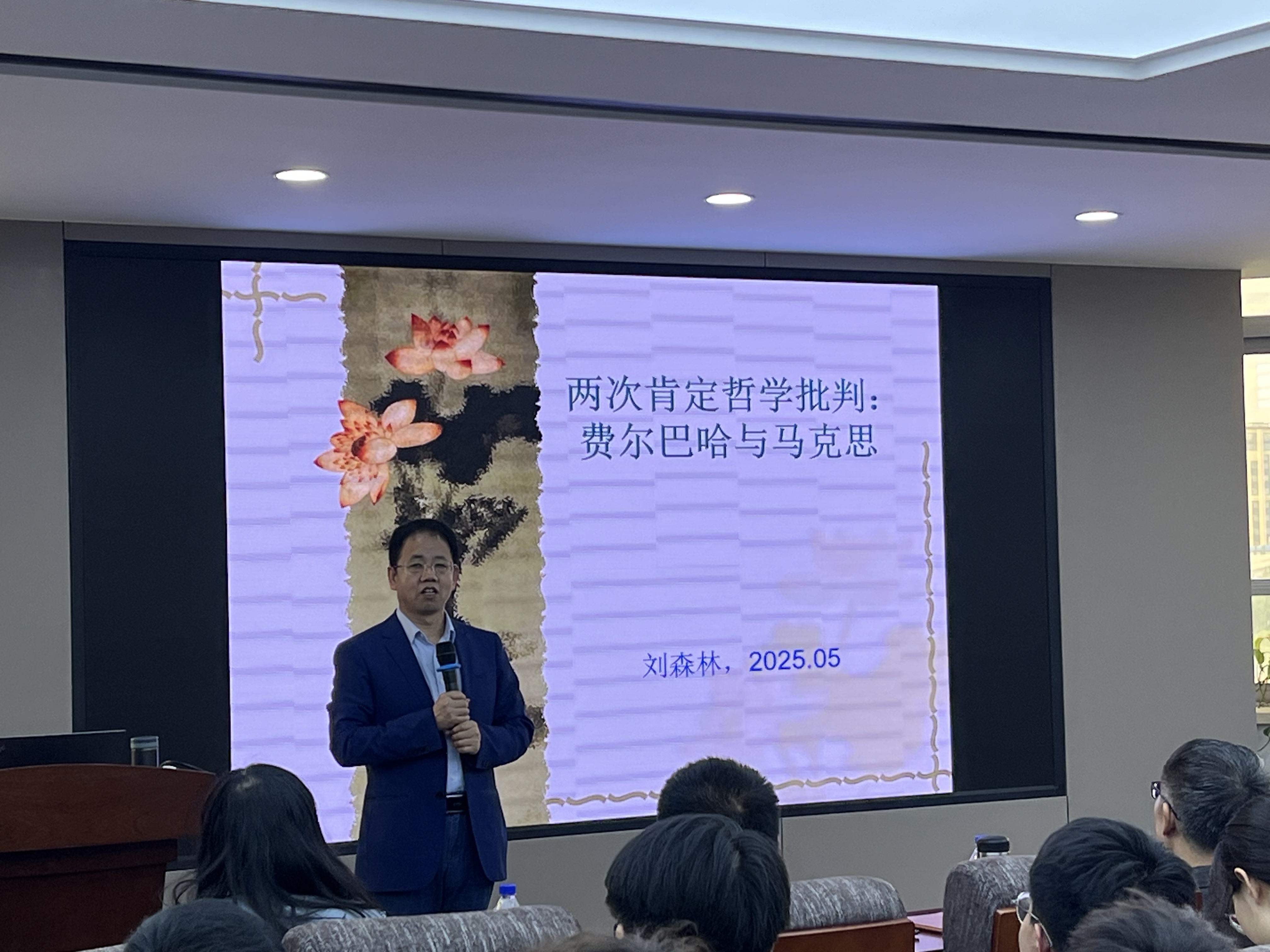 2025年5月19日,吉林大学哲学社会科学学术讲座第1232场——“对肯定哲学的两次批判:费尔巴哈与马克思”在我院顺利举行。主讲人为山东大学哲学与社会发展学院讲席教授、教育部特殊人才支持计划特聘教授、山东省泰山学者特聘教授,教育部哲学教学指导委员会委员刘森林教授。本次讲座由哲学社会学院院长白刚教授主持,社会科学研究院院长曲红梅教授、哲学系李慧娟教授、袁立国教授、荣伟杰老师出席讲座。