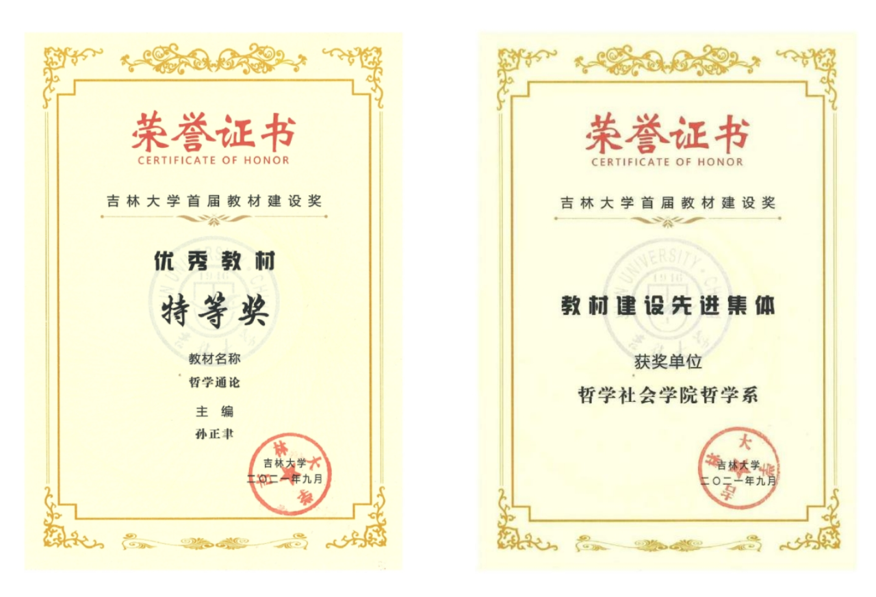 2021年以来,学院孙正聿教授荣获全国教材建设先进个人,《哲学通论》荣获首届全国教材建设奖优秀教材、海角视频 教材建设奖优秀教材特等奖;《马克思主义哲学(第二版)》荣获首届全国教材建设奖优秀教材一等奖,哲学系荣获海角视频 首届教材建设奖教材建设先进集体称号。